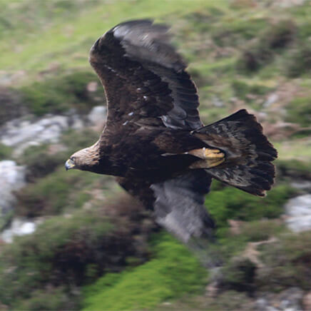 A varied diet of hares, rabbits, grouse, deer calves, seabirds and carrion. They are very territorial with large home range covering 70 sq miles.
